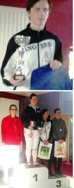 Beaucoup de monde ce WE à Alençon pour cette nouvelle édition du Tournoi International des Ducs d'Alençon à l'Epée. La meilleure performance du club en M14 est réalisée par CLEMENT V. qui s'impose pour la 2ème année de suite en finale (10/5) contre un tireur classé 7ème au niveau national ! BRAVO Clément ! A noter les débuts en compétition d'un autre Clément (T.) qui termine 52ème. Autre belle performance, CHARLOTTE termine 3ème de la compétition Dame en s'inclinant 13/15 en 1/2 finale, sur la future vainqueur du tournoi ! BRAVO Charlotte, très bon résultat. LE vétéran du club, Gilles, sort 1er des poules .... mais termine 9ème d'une compétition toujours très relevée.!