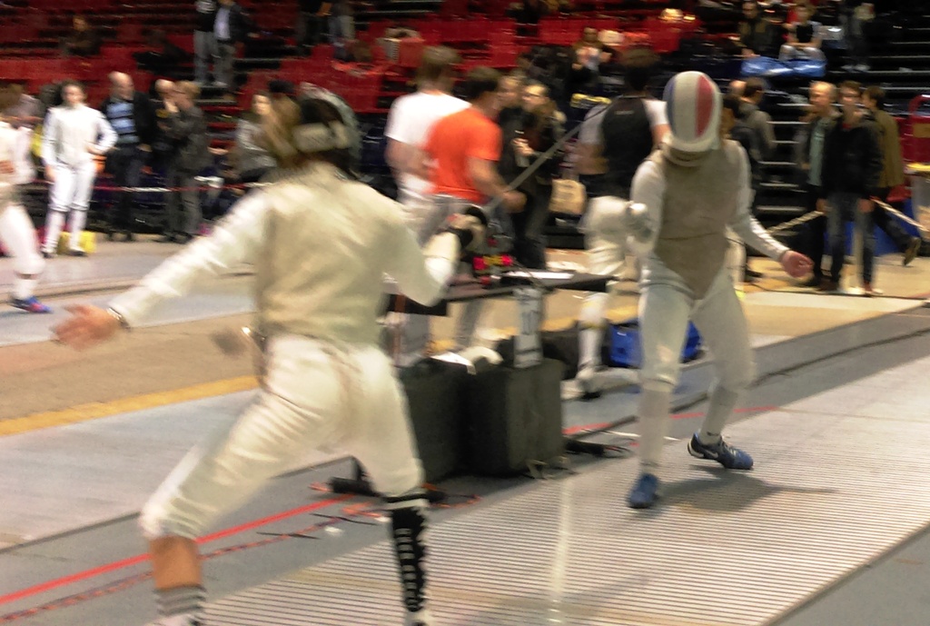 PARIS le WE dernier : CN Elite des M17 ! Chez les filles: 190 inscrites, 27 poules de 6 ou 7, Objectif => être qualifié dans les 64 meilleures pour le dimanche !! Super début de compétition (5V et 1 D) en ne concédant qu'une défaite (contre la future finaliste CAUJOLE E.). 30ème à la sortie des poules ... la journée commence bien ! Qualifiée d'office pour le 1er tour de tableau, faut pas rater le second. Ca commence mal, quelques touches de retard ... le jeu s'équilibre ... c'est très serré .... elle est menée 14 à 11 ... ça semble perdu ... et en bonne guerrière et surtout "au mental", Héléna l'emporte 15/14 !! Ouf ! Dimanche ... est un autre jour ! On remet ça. 1 tour de poule puis tableau. Objectif => être dans les 48 sélectionnées (et sélectionnable pour CABRIES). Forcement, la poule est costaud ! Avec 2V et 3 D (dommage, 1V supl. était possible) Hélèna se classe 40ème et doit passer 1 tour de tableau pour espérer rentrer dans les 32 ! Pas de chance, elle rencontre WATSON E. (habituellement dans les 8 premières françaises et qui a complètement rater sa poule ....) Match perdu et classement final pour Hélèna 41ème !!! Très bonne compétition qui la classe 50 ème française. Pour la Coupe du Monde à CABRIES, les 48 premières du clt. nat. sont qualifiées .... + 16 repêchées par la commission ! On croise les doigts ! Jean participait aussi à cette compétition 320 tireurs .... Il a une poule difficile d'entrée et ne réussi pas à se qualifier pour le dimanche. Clt. final 173ème.